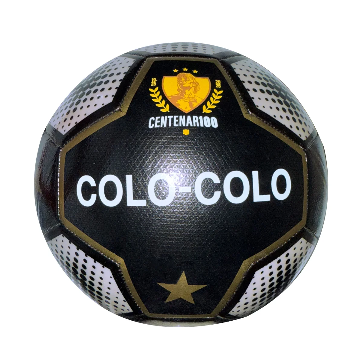 Balón Colo Colo Centenario (Edición Conmemorativa) El Balón Colo Colo Centenario 100 es una pieza de colección lanzada para honrar los 100 años de historia del Club Social y Deportivo Colo Colo, que celebra su centenario en 2025. Este balón encapsula la gloria y la pasión del club más grande de Chile. Su característica principal es el diseño conmemorativo, que destaca por incorporar el escudo oficial del club junto a la leyenda «Centenario 1925-2025» o «Centenario 100». Las ediciones más destacadas (como Oro y Plata) utilizan estos tonos metálicos sobre una base negra o blanca, simbolizando el valor histórico del hito. En términos técnicos, es un balón de tamaño N° 5 (estándar), fabricado con poliuretano de alta resistencia que asegura una durabilidad superior para el juego recreativo o entrenamiento. Su cámara interior de caucho garantiza una óptima retención de aire. Más allá de lo deportivo, es un símbolo de identidad y un objeto imprescindible para el «Eterno Campeón», rindiendo tributo a una centuria de triunfos, historia y pasión alba.