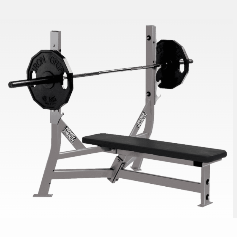 El Olympic Flat Bench es un press de banca plano de estilo olímpico que ofrece la misma durabilidad y alta calidad que los bancos y soportes de Hammer Strength.