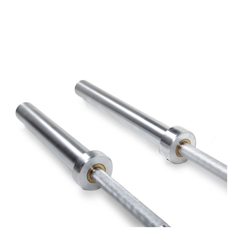 Barra Olímpica de 2,20mt de Longitud. Peso: 20Kg. Fabricada en acero y terminación cromada. Con 4 rodamientos. Apta para alta carga hasta 1500 libras (680Kg aproximadamente).