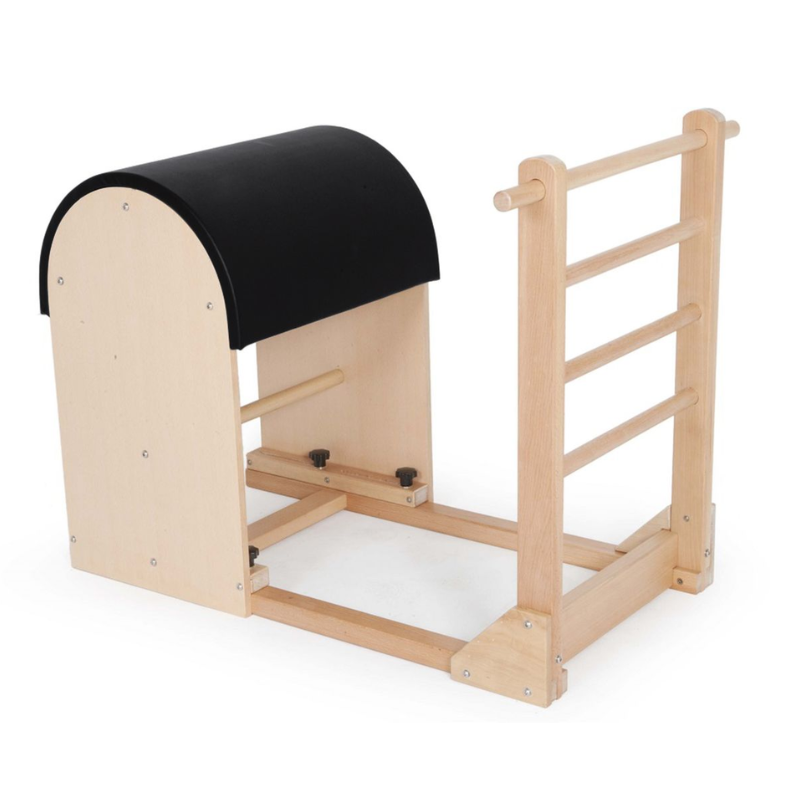 Ladder barrell de alta calidad para la práctica de Pilates. Incluye plataformas adicionales acolchadas (tablas para apoyar los pies) que permiten realizar una gama más amplia de ejercicios y jugar con diferentes alturas de trabajo.