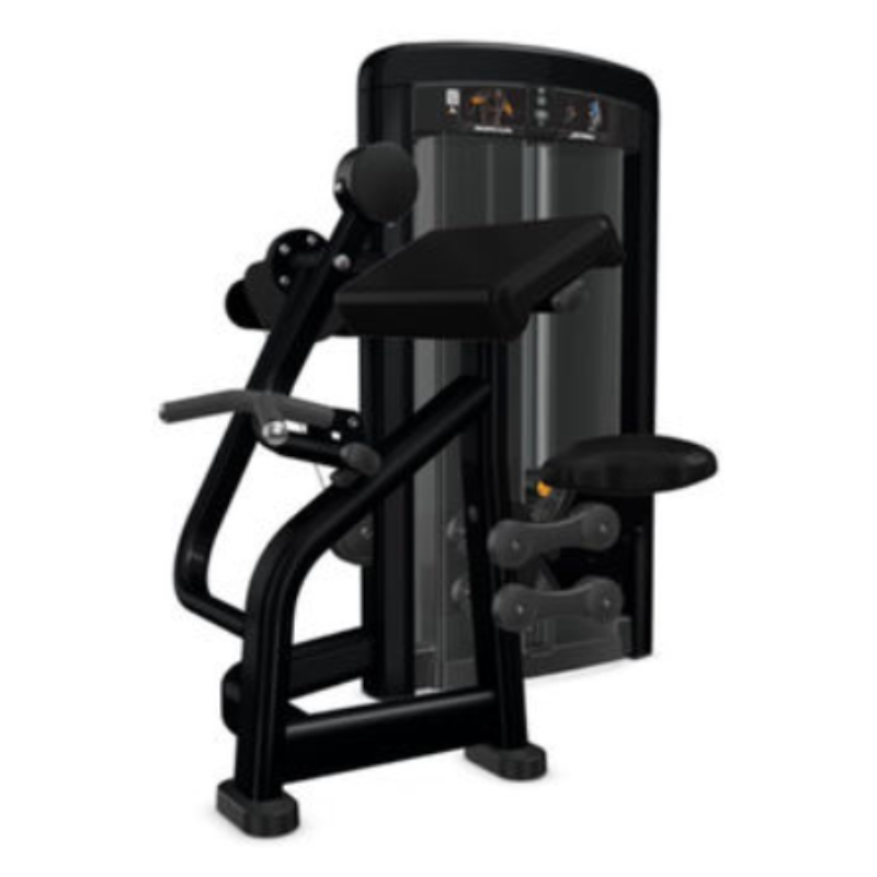 Los reposabrazos de la unidad Biceps Curl – Dependent de Insignia están inclinados para dar estabilidad y limitar el movimiento no deseado de los hombros. Los pivotes y los agarres están dispuestos de tal forma que reducen la tensión en la muñeca y mejoran la alineación.