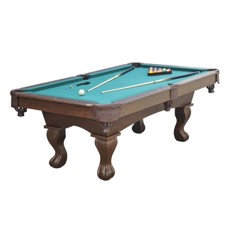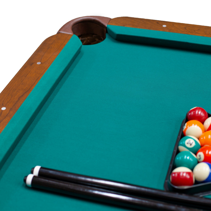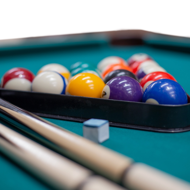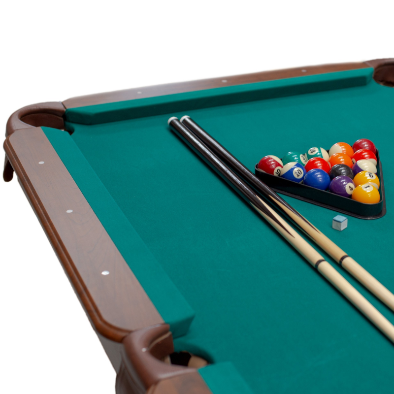 Incluye dos tacos y un juego de bolas de billas de 2,1/4 diámetro así como triángulo y dos tizas.