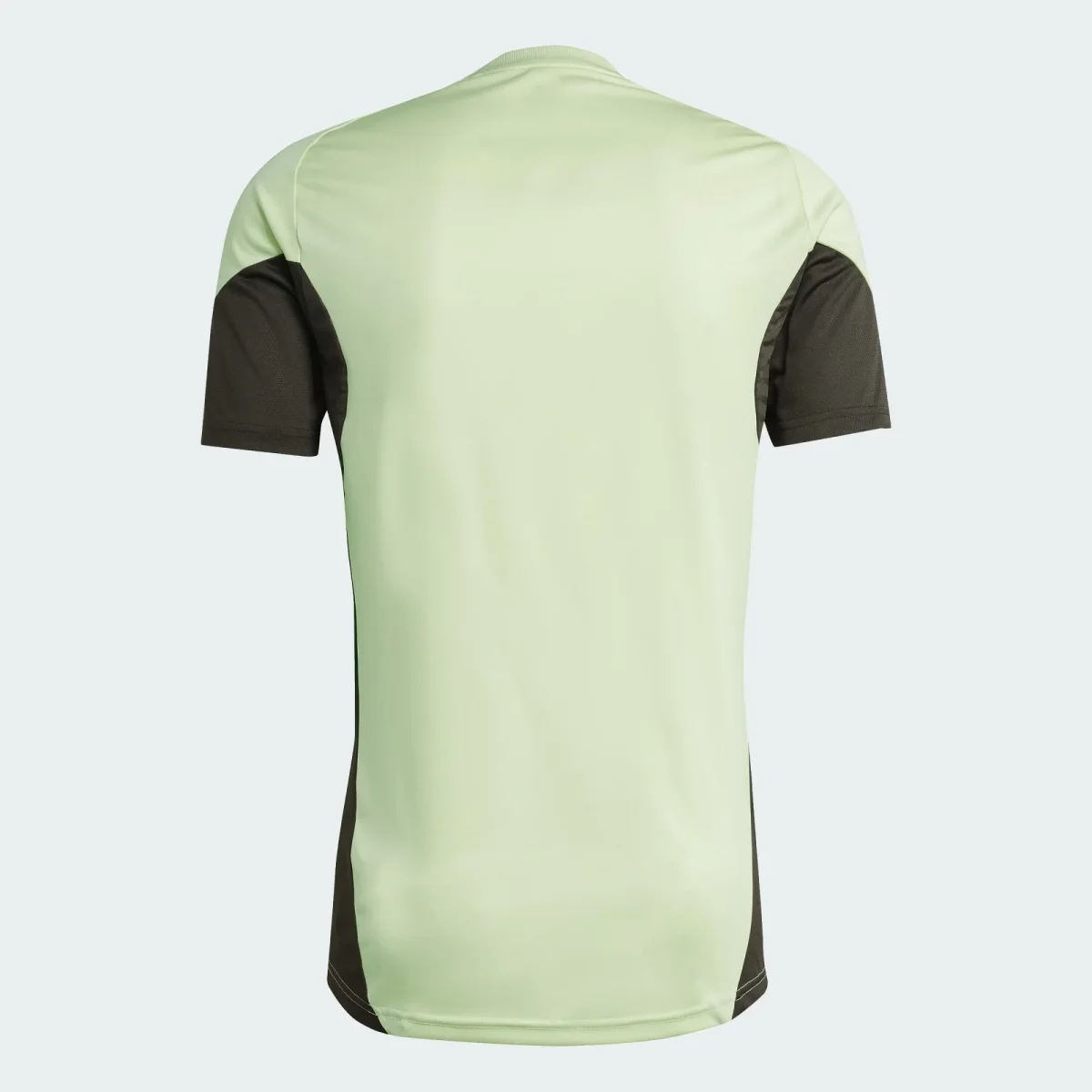 Lleva tu pasión por el Real Madrid al campo de entrenamiento. Esta camiseta de fútbol, que forma parte del conjunto adidas que visten los jugadores antes de afrontar los partidos de liga, proporciona un juego relámpago gracias a su suave tejido y a su tecnología AEROREADY que controla la humedad. Para añadir inspiración a cada movimiento, un escudo del equipo termotransferido ocupa un lugar privilegiado en el pecho.