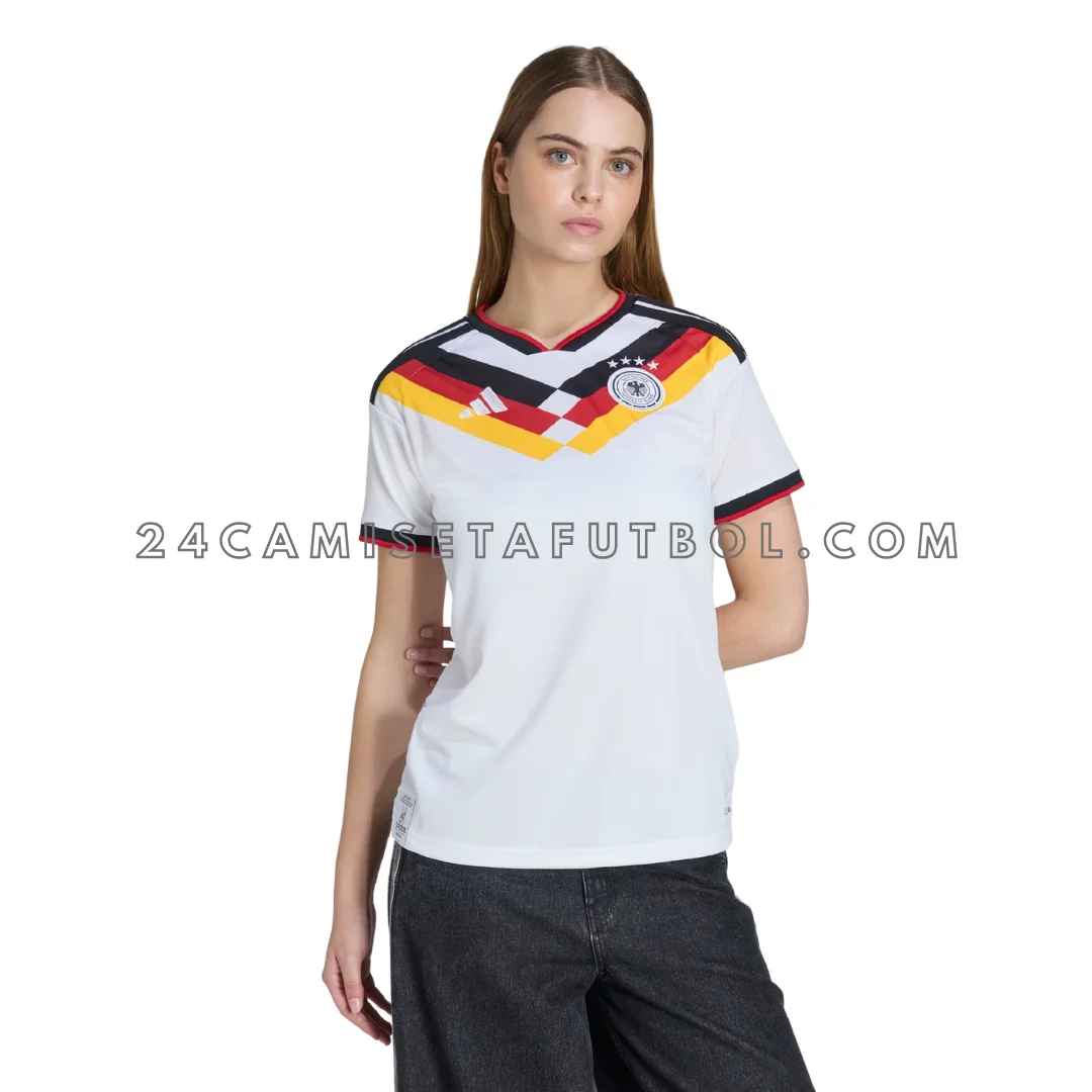 La camiseta Alemania femenina primera equipación 2026 es un homenaje moderno a la tradición, la fortaleza y la herencia de campeonatos. La camiseta Alemania fútbol femenino primera está diseñada para el escenario más grande del fútbol internacional. Las aficionadas pueden lucirla en los partidos como local, donde el equipo busca un apoyo lleno de energía.