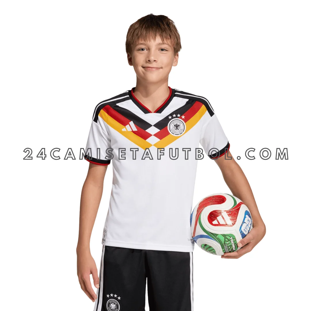 Esta increíble camiseta Alemania niño 2026 primera es la que le gusta a todos los niños que aman el fútbol. Es súper emocionante porque te hace sentir como un verdadero campeón. Si Alemania es tu equipo favorito, entonces consigue tu equipación Alemania niño primera ahora. La camiseta premium y suave está hecha por Adidas.