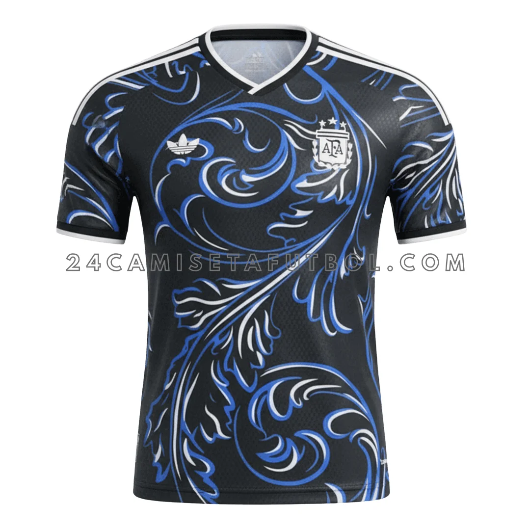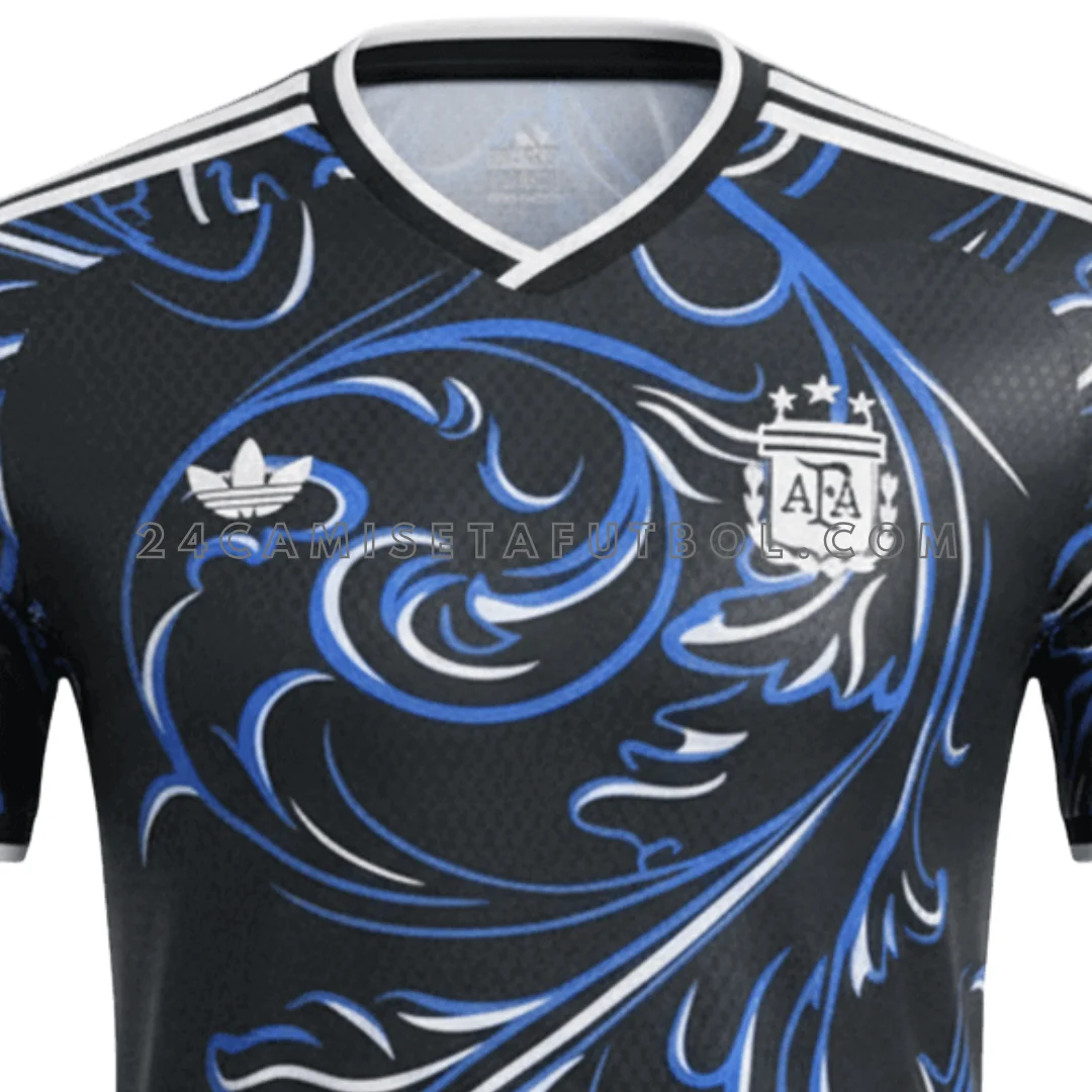 El diseño general de flores en azul y blanco lo hace diferente de otras equipaciones. Una base elegante en azul marino o tono oscuro con detalles nítidos en celeste y blanco hace que la camiseta segunda equipación Argentina original mujer sea más llamativa. La camiseta segunda equipación Argentina femenina tiene un diseño pensado para crear un look que destaque en el campo.