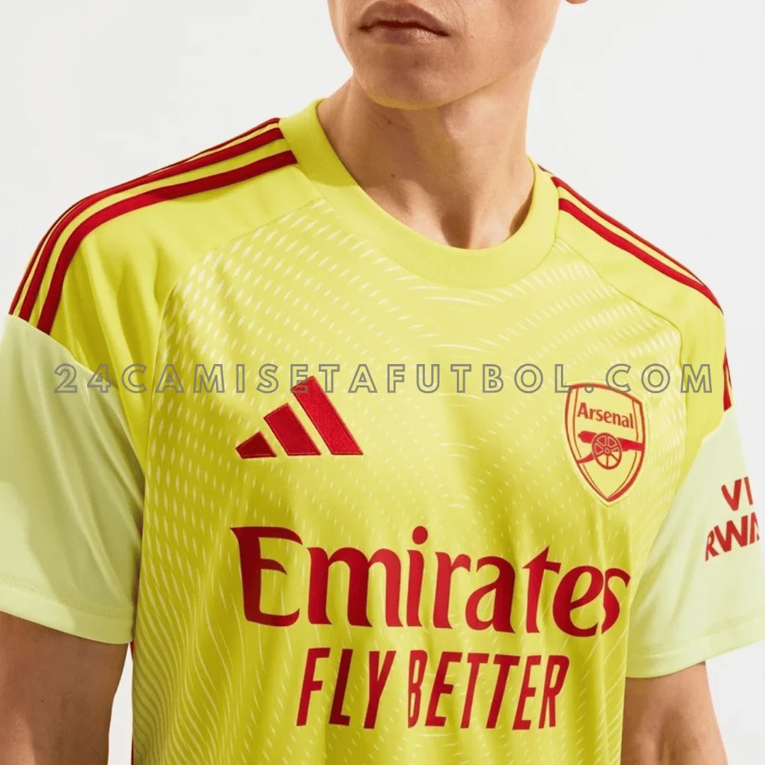 Compra la camiseta de portero GK 1 del Arsenal FC 2025-26. Equipación en amarillo con detalles rojos, ligera, transpirable y perfecta para porteros y fans del club.