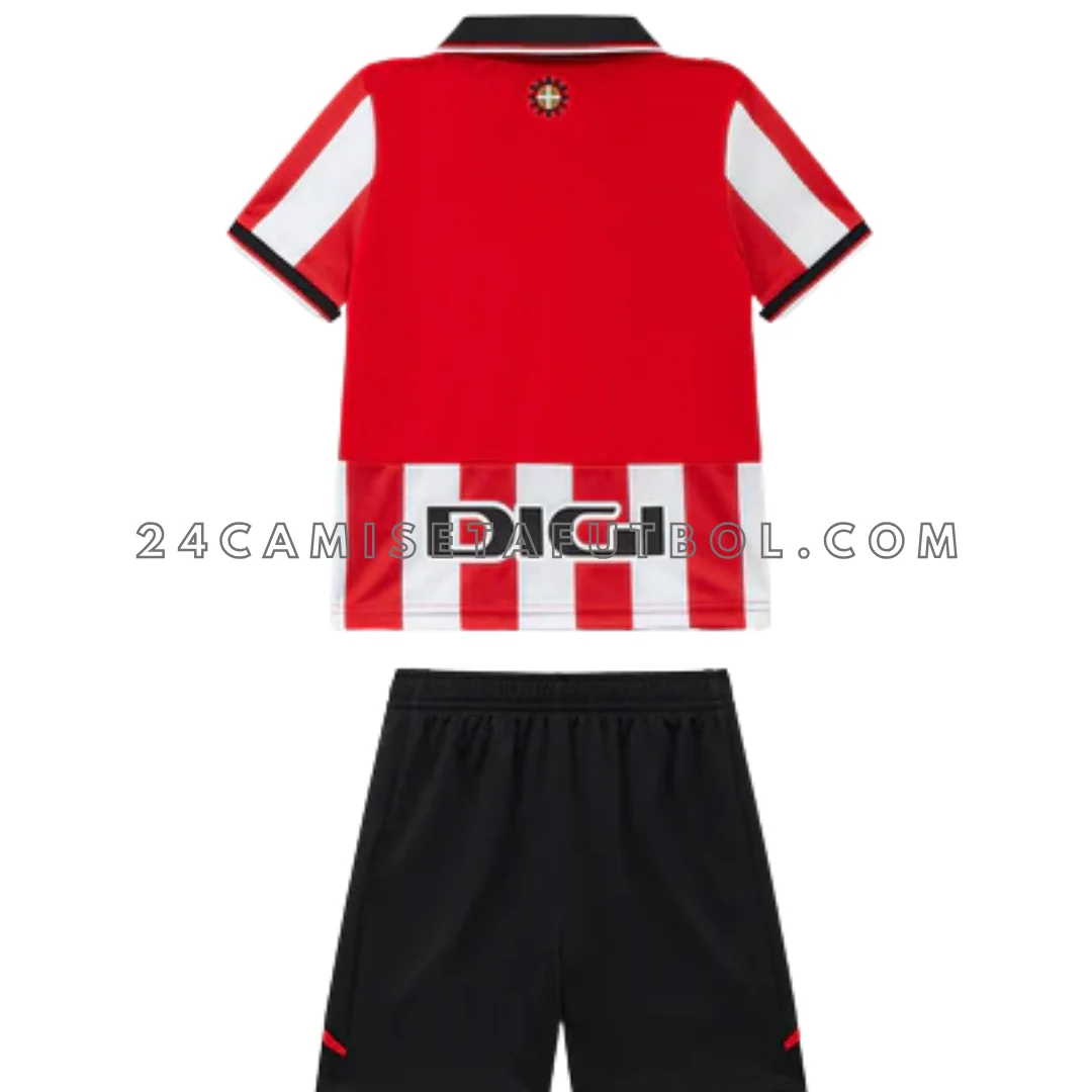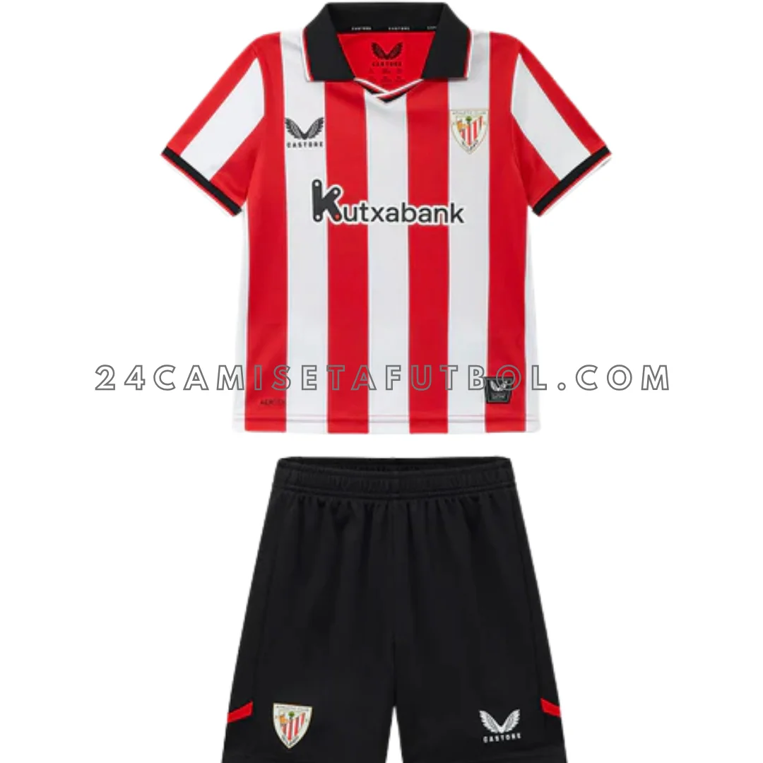 El cuello en V negro con detalles rojos añade un toque moderno a la equipación Athletic Bilbao niño primera. Las mangas también están rematadas con borde negro. La textura y el diseño general de la camiseta Athletic Bilbao primera niño es limpio. También es perfecto para combinar con otras prendas oficiales del club. Con este kit, los pequeños aficionados pueden completar su colección. Pueden hacerlo junto con la segunda equipación y la portero.