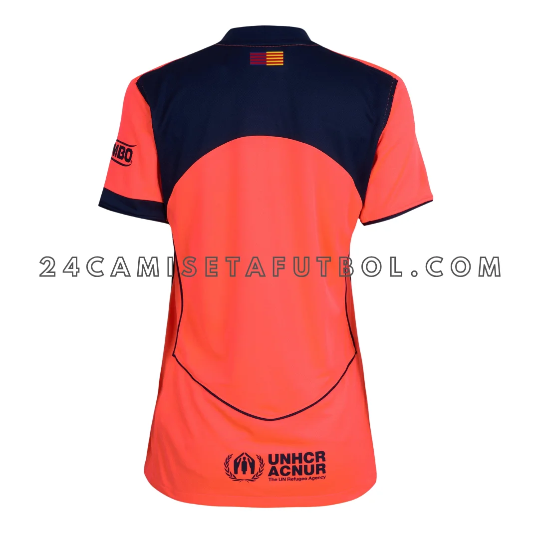 Aquí está la camiseta Barça mujer tercera equipación 2026, diseñada con un color base naranja en todo el conjunto. También incluye contraste en azul marino. Combina energía, confianza y moda moderna del fútbol en un solo diseño poderoso. Para una opción más clásica, las aficionadas también pueden explorar la camiseta Barcelona mujer primera equipación 2026, que refleja la tradición y los colores icónicos del club.