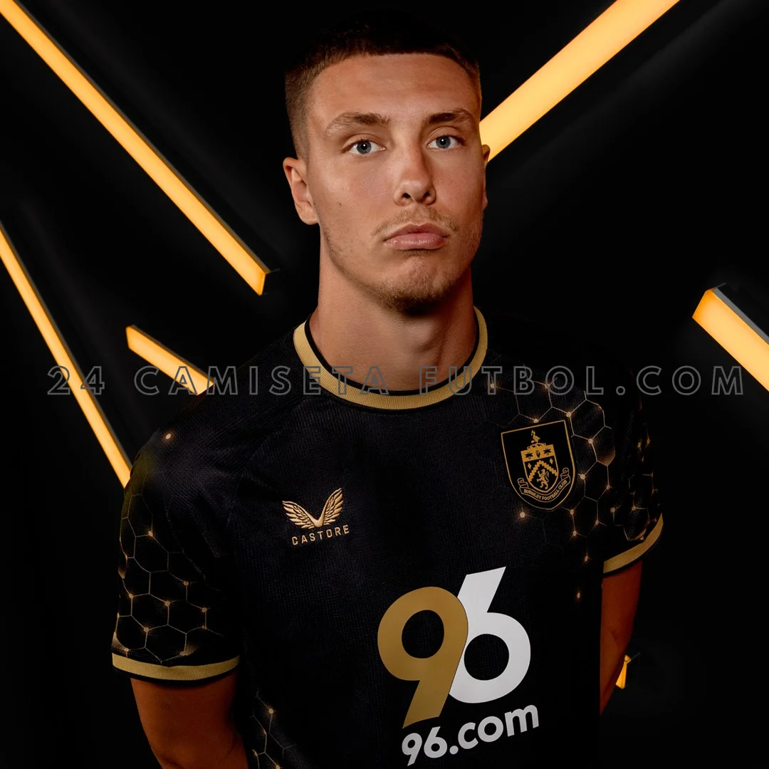 El escudo del equipo y el gran patrocinador “96.com” aparecen en colores dorado y blanco. Los jugadores usan la tercera equipación burnley cuando la camiseta local o la visitante se parecen demasiado a los colores del equipo rival. También pueden llevar la equipación tercera burnley en algunos partidos de la Premier League y en competiciones de copa. Si deseas descubrir otros kits de la liga inglesa, revisa nuestras camisetas premier league 25/26.