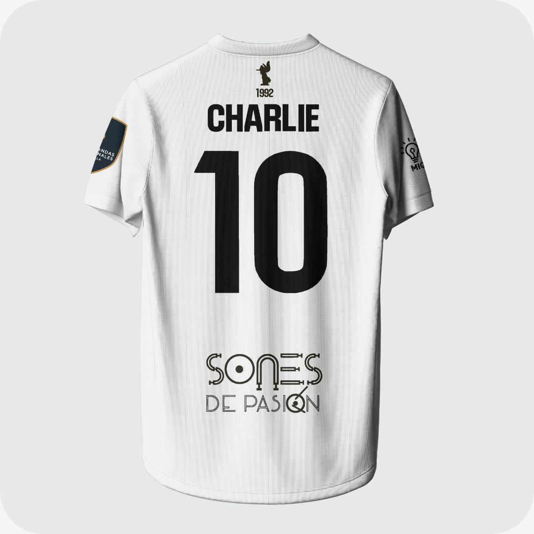 La camiseta permite la personalización de nombre y dorsal, manteniendo la identidad y el estilo oficial del club.