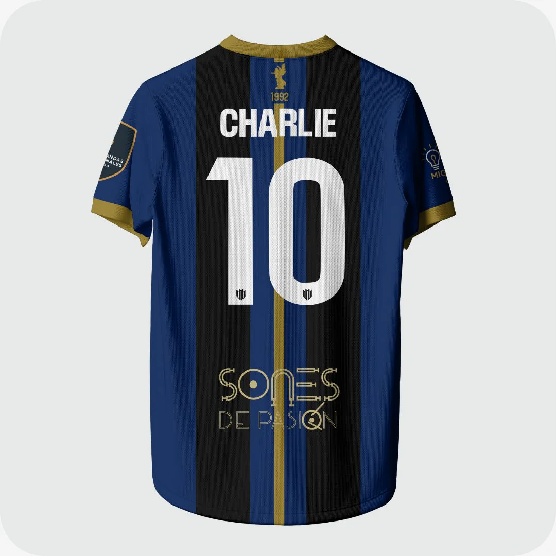 La camiseta permite la personalización de nombre y dorsal, manteniendo la identidad y el estilo oficial del club.