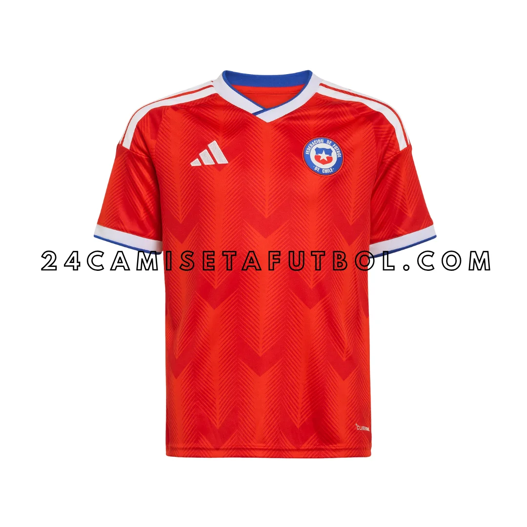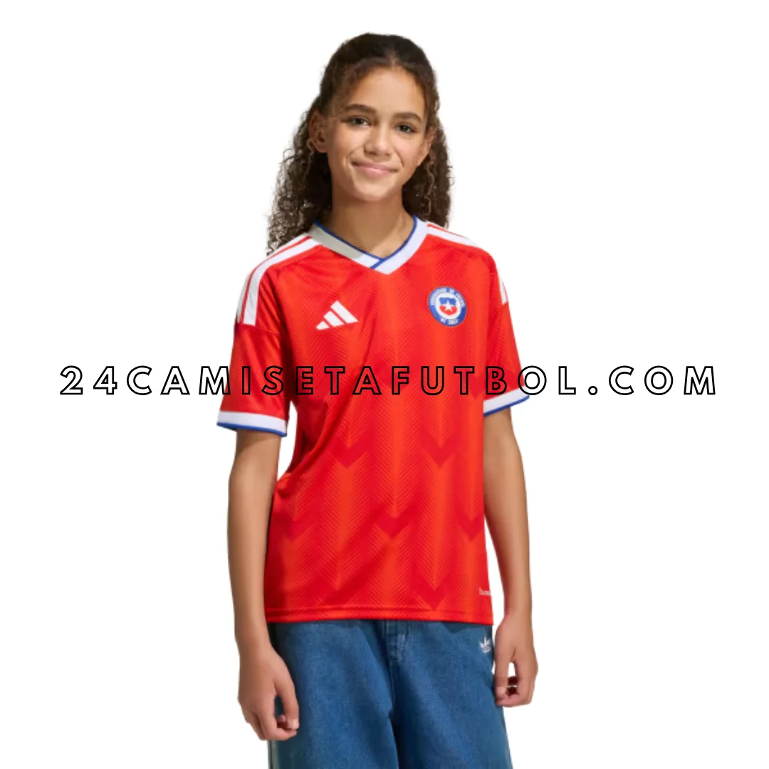 Esta es la súper emocionante camiseta Chile niño 2026 primera para niños. Parece un fuego artificial rojo a punto de explotar de alegría.