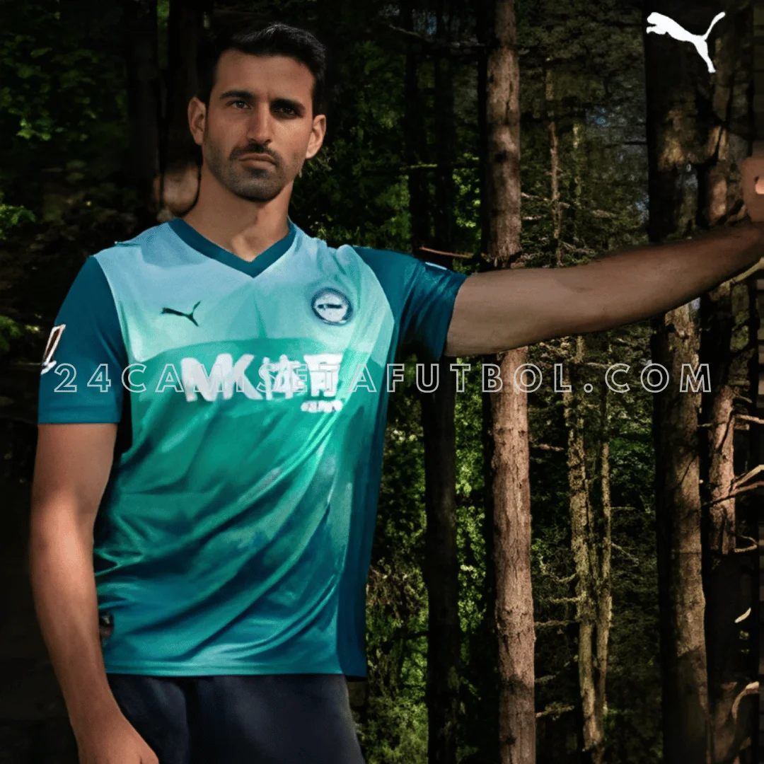 Esta es la tercera equipación alavés del Deportivo, o una de las equipaciones de portero, para la temporada 2025-26, fabricada por Puma. No es la tercera equipación principal para los jugadores de campo. La versión verde que se utiliza en esta equipación es una camiseta especial para porteros. Cuenta con un precioso diseño degradado. Luce espectacular con un verde claro en la parte superior que se funde hacia un verde oscuro en la inferior. Toda la estructura de esta camiseta evoca un bosque y colinas verdes. Puedes encontrar más opciones de camisetas laliga 2025/26 en nuestra tienda.