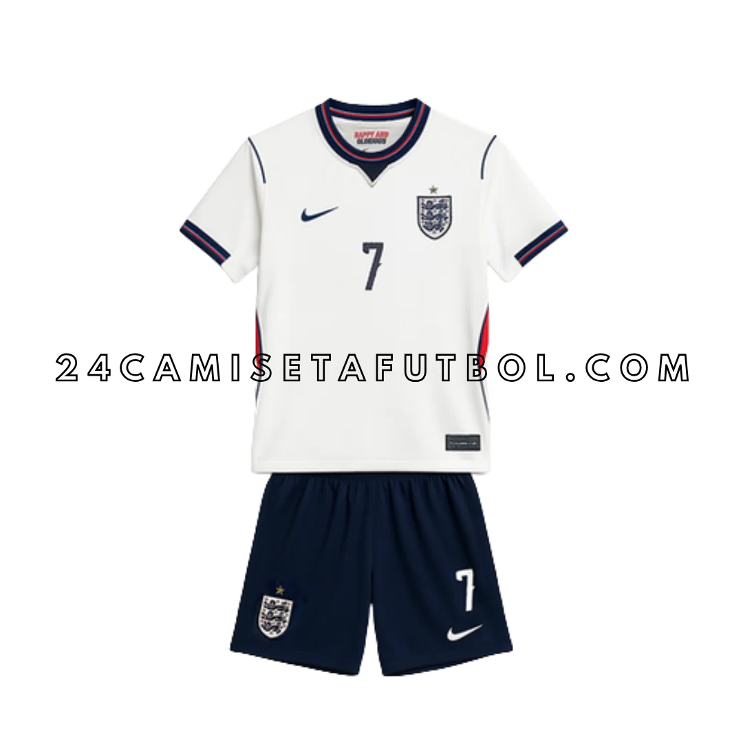 La equipación Inglaterra niño 2026 primera destaca por su estilo limpio y elegante. Es el kit local con un toque moderno que muchos aficionados consideran un nuevo clásico.