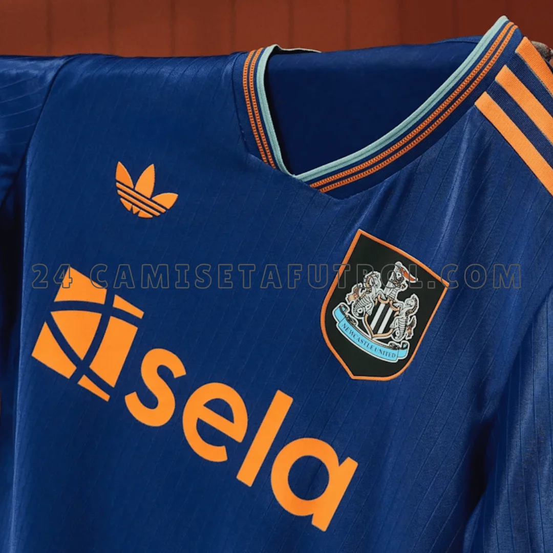 El pecho presenta los logotipos de la marca y del patrocinador en naranja. El escudo del club también está colocado en el pecho izquierdo en naranja y azul cielo. La combinación de colores de esta camiseta es muy diferente y elegante. Está inspirada en la llamativa estética de las Newcastle camisetas tercera del club de 1997-98. La parte trasera de la camiseta es azul liso. La parte trasera del cuello también lleva el gráfico del escudo del club de la década de 1980 en una naranja vibrante. Para otras versiones de la camiseta del Newcastle, revisa la camiseta Newcastle 20225/26 primera.