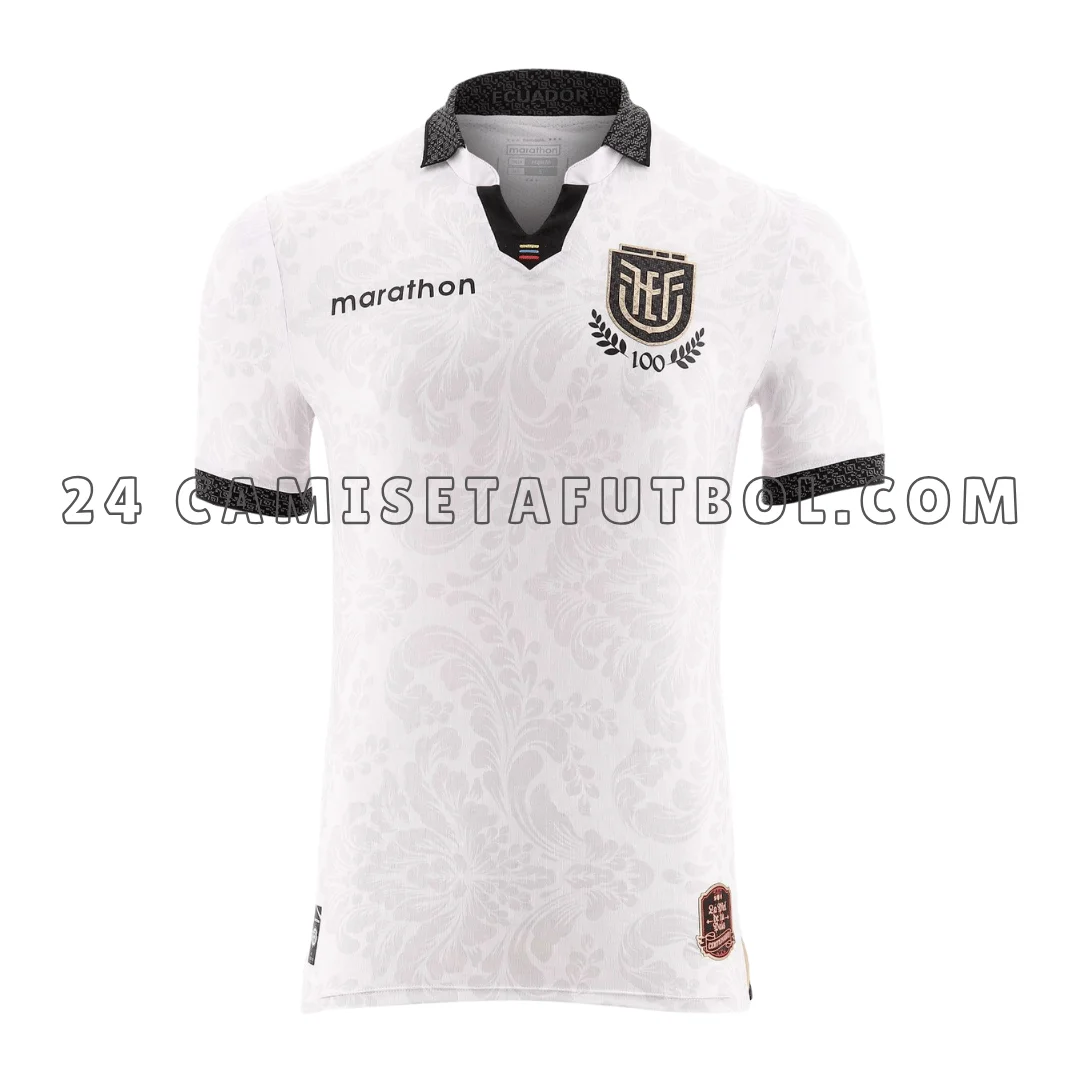 El cuello, los puños de las mangas y un pequeño triángulo en el pecho son negros con patrones geniales, haciendo que la camiseta de portero ecuador luzca más atractiva. También tiene una forma en V con negro en el interior y «ECUADOR» escrito en la parte trasera del cuello, mostrando el orgullo del equipo. El logo de Marathon en negro en un lado representa al patrocinador de este kit.