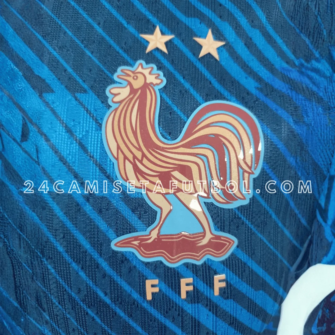 El uniforme de casa de Francia 2026 es hecho con un toque de diseño moderno, pero es también tradicional. Tiene un llamativo color azul marino con hermosos detalles dorados y blancos. El color base de la primera equipación de Francia es azul marino, mientras que el escudo es de un color cobre metálico. Este logo de Nike está también en la camiseta en dorado, lo cual muestra la autenticidad de la camiseta. El bordado tiene un fino acabado que da una apariencia premium a la camiseta.