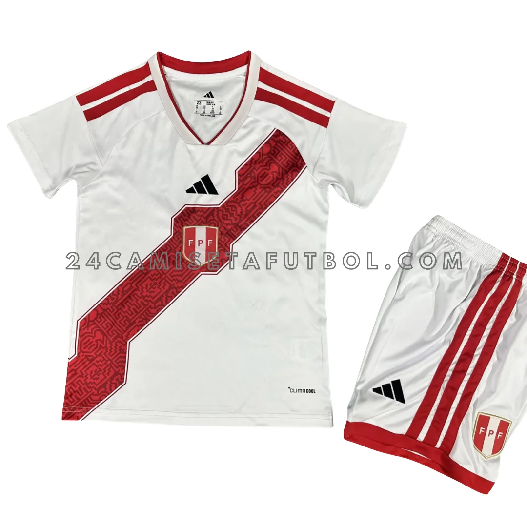 La camiseta primera equipación Perú niño 2026 diseñada por Adidas es perfecta para los pequeños aficionados que quieren apoyar a su selección con estilo. Esta versión especial del kit está hecha para los partidos en casa. Ofrece comodidad y frescura durante todo el día. Con la camiseta primera equipación selección Perú niño, los niños pueden mostrar su orgullo por el equipo en cualquier momento.