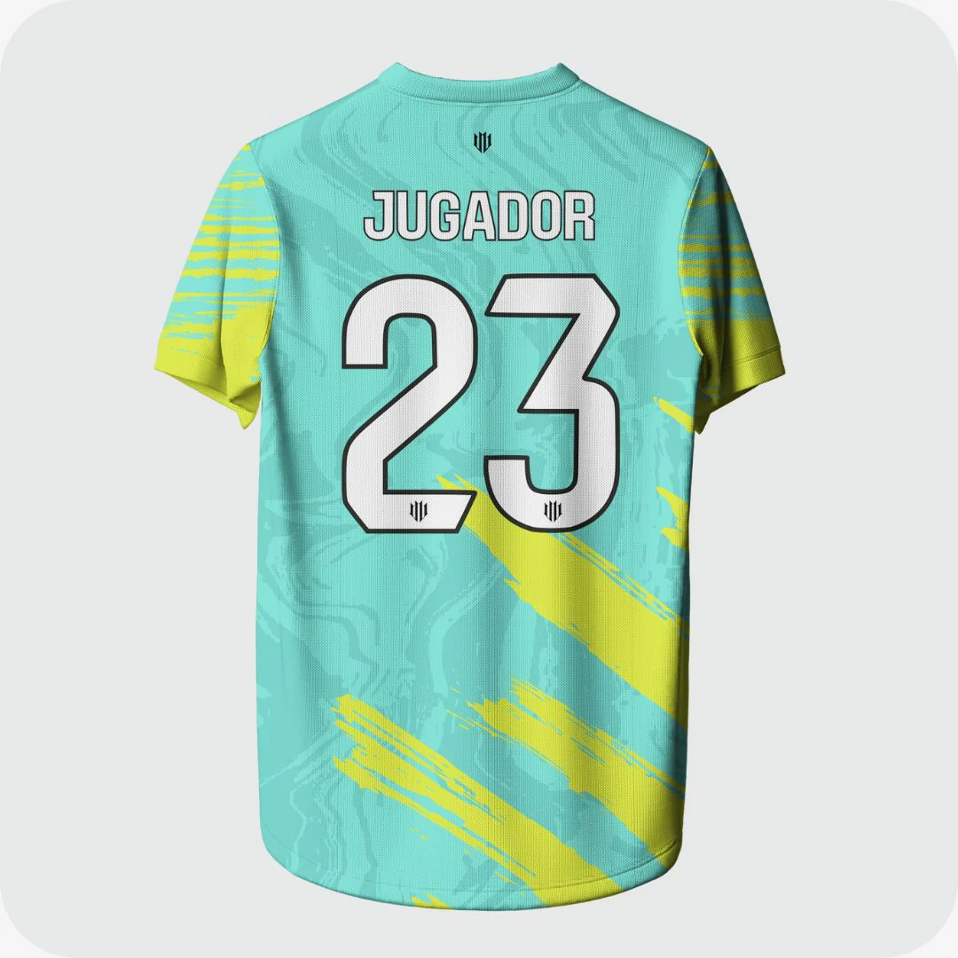 La camiseta permite la personalización de nombre y dorsal, manteniendo la identidad y el estilo oficial del club.