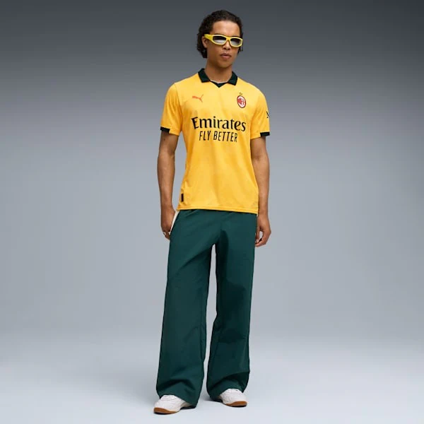 Hay equipaciones que llaman la atención. En esta, los detalles hablan por sí solos. La tercera equipación 25/26 se inspira en el estilo desenfadado del Milan, reinterpretando el monograma ACM —un guiño a la temporada 95/96— como un llamativo detalle distintivo. En un amarillo brillante y soleado con detalles en verde intenso, es una equipación que combina la tradición futbolística con la vanguardia de la moda como solo el Milan sabe hacerlo.