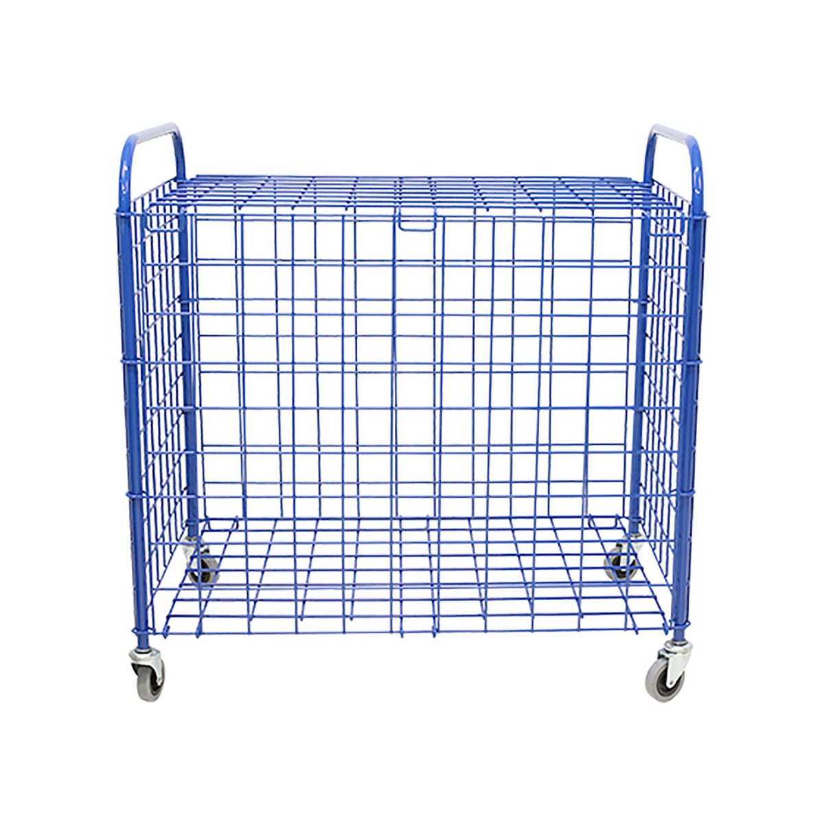 Carro Portabalones fabricado en acero pintado de azul. Plegable con ruedas para su transporte y tapa.