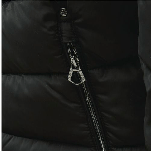 Confeccionada con tejido de sarga de poliéster de alto brillo que es sumamente suave de llevar. Aislamiento a granel de alta calidez y bajo volumen. Forro estampado para puntos de estilo extra. Capucha ajustada. Múltiples bolsillos y un puerto para auriculares para mantener el ritmo. Adornado con cristales Swarovski.