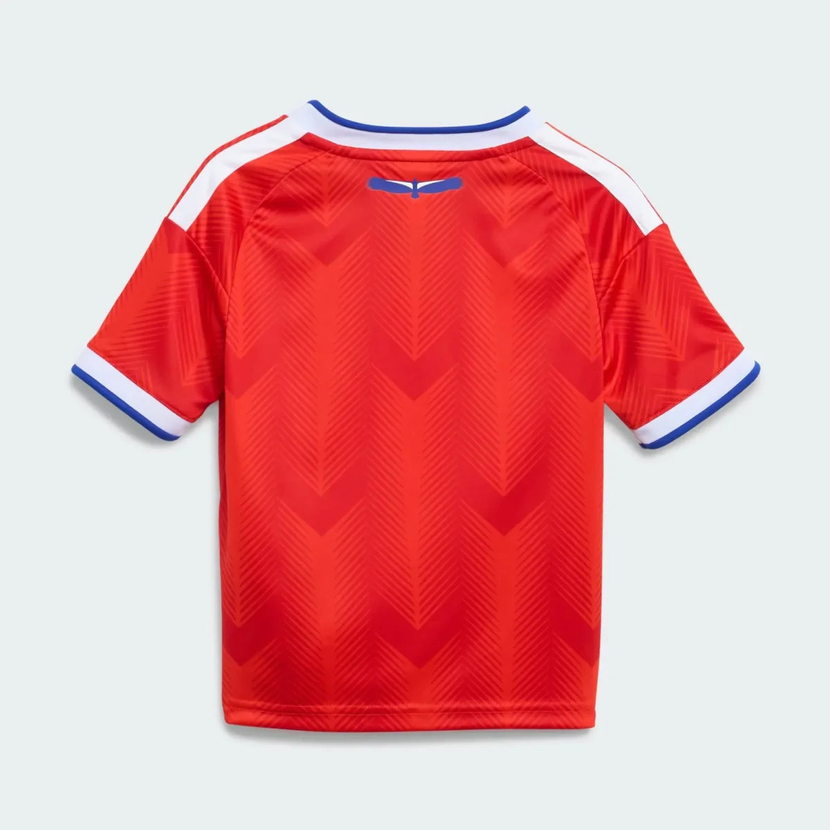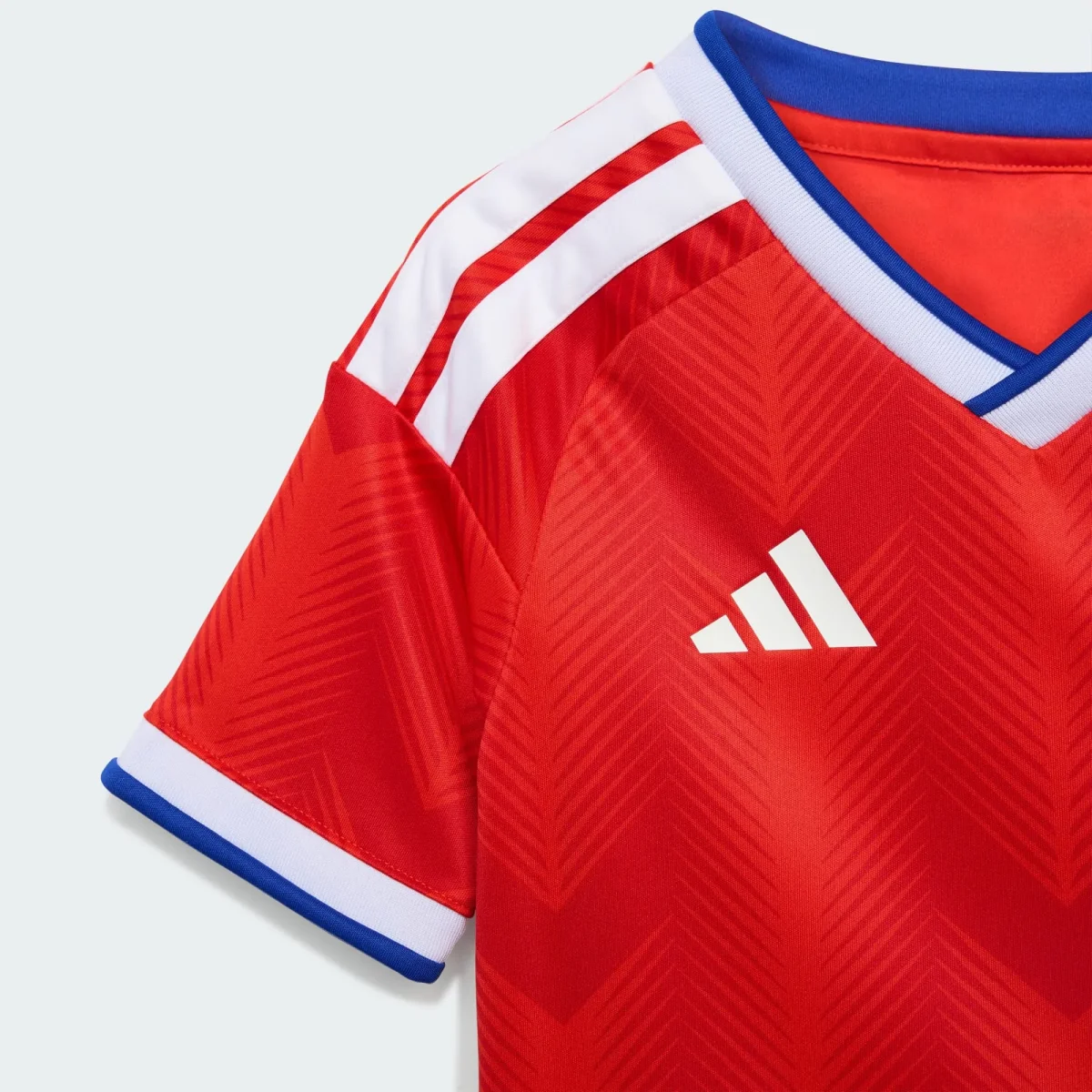 Míralos saltar a la cancha con orgullo con el conjunto local de la Selección Chilena 26, inspirado en el majestuoso cóndor, símbolo de la unidad y la fuerza de Chile. Este conjunto está pensado para los jóvenes entusiastas del fútbol que sueñan con emular a sus héroes. El vibrante diseño refleja el espíritu de la nación, lo que lo convierte en uno de las favoritos tanto para los días de partido como para el recreo. El conjunto incorpora el escudo del club y el logo de adidas, incluidas las emblemáticas 3 Tiras, que añaden un toque adicional de autenticidad. Con un ajuste clásico, ofrece comodidad y libertad de movimiento, permitiendo a los niños centrarse en su juego. La tecnología Climacool integrada evacua y dispersa el sudor para un rendimiento fresco, seco y sin distracciones durante el juego. Tanto si está jugando en el parque como si está animando desde las gradas, este conjunto es imprescindible para los jóvenes hinchas del fútbol. Deja que muestren su entusiasmo con este conjunto listo para el partido y que disfruten del juego con confianza y estilo.
