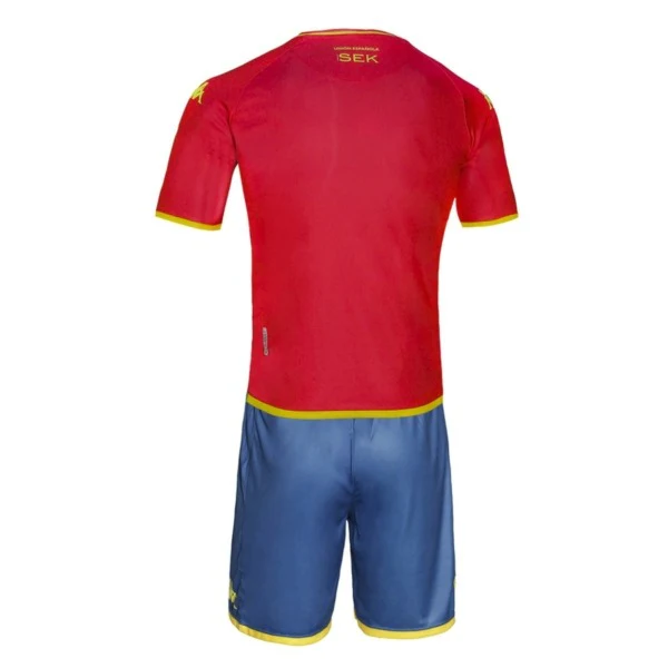 Réplica oficial del conjunto de camiseta y pantalones de juego KOMBAT™ en tela de interlock. AJUSTE REGULAR. Manga corta raglán, cuello redondo, pantalones cortos con cinturilla elástica y cordón. Inserción simulada impresa en la parte inferior de la manga, la parte inferior de la camiseta y la parte inferior de los pantalones cortos. Omini en el pecho, mangas y pantalones cortos, patrocinador, parche del equipo y personalización del equipo.