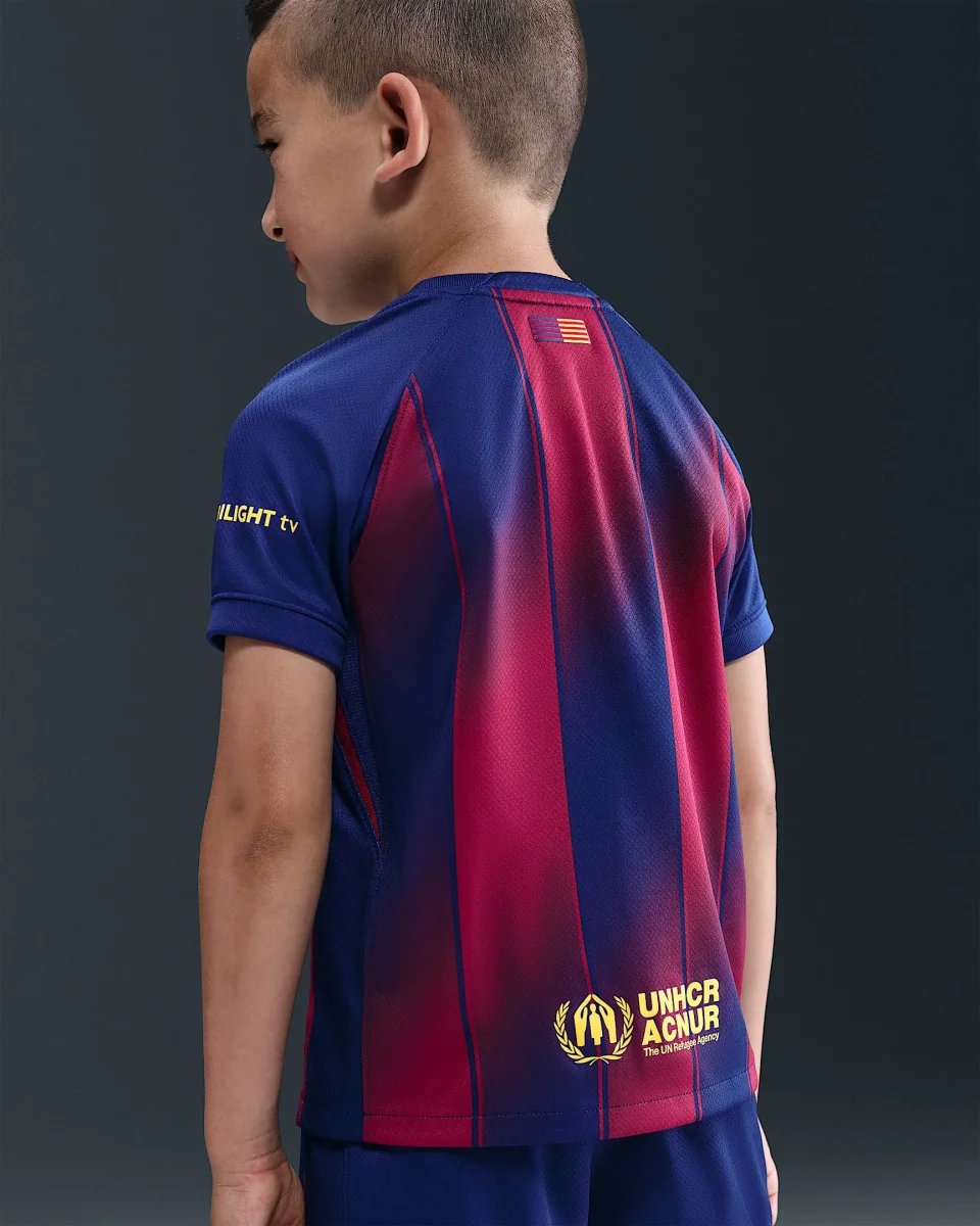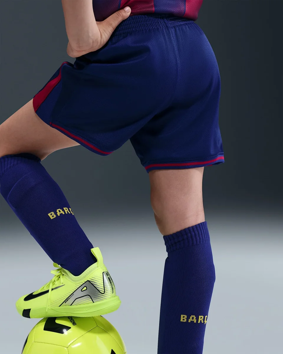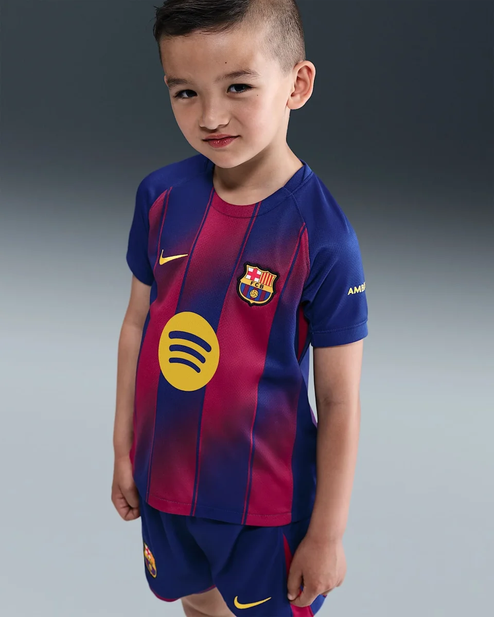 Equipa a tu futura estrella con el uniforme completo que ofrece este conjunto de tres piezas. Esta equipación, inspirada en la que llevan los profesionales en el campo, incluye una camiseta del equipo con un short y unos calcetines a juego. Está confeccionada con un tejido ligero que capilariza el sudor para mantener la comodidad de tu joven atleta mientras corre y juega.