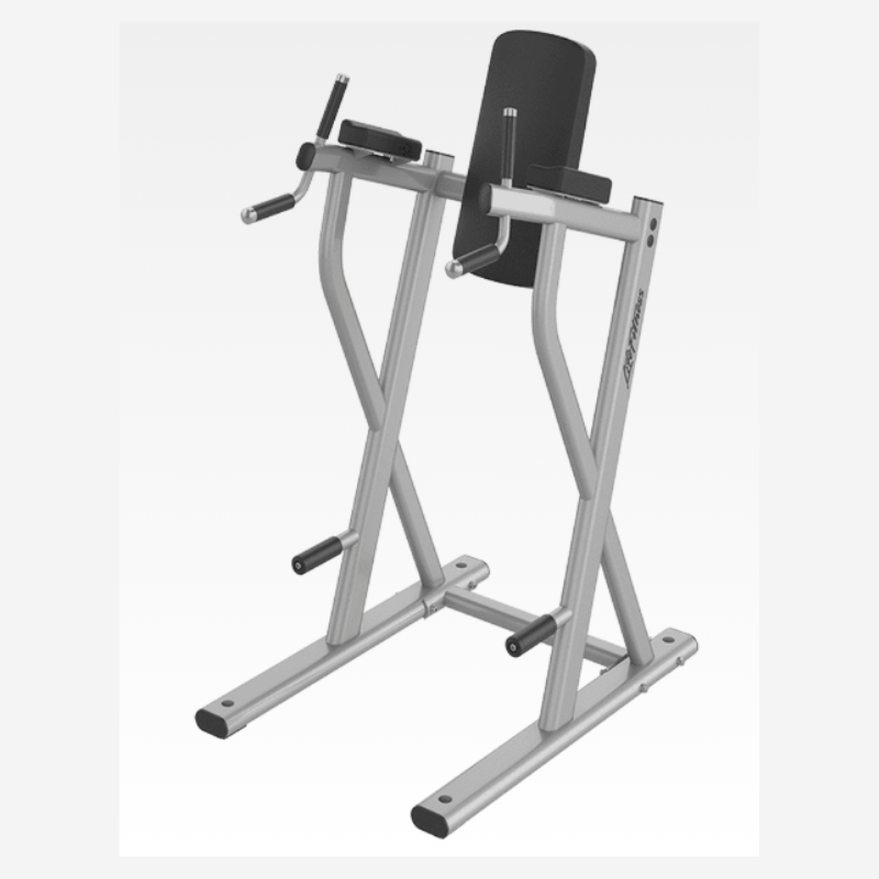 La máquina Dip/Leg Raise de la serie Axiom ofrece una posición estable para ejercicios de palanca de rodilla verticales y fondos. Incluye un peldaño para facilitar la entrada y salida.
