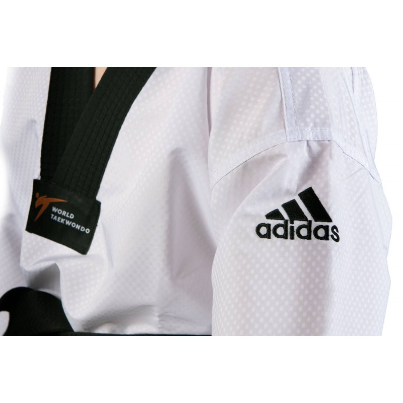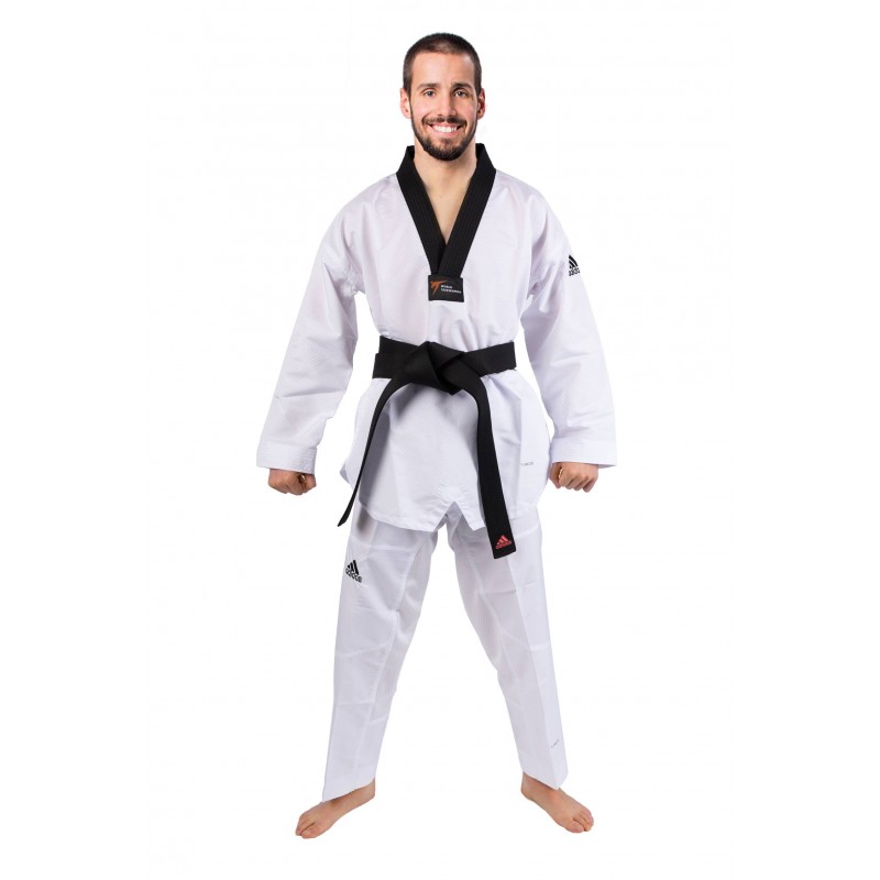 Dobok con homologación WT diseñado para el entrenamiento y competición fabricado en tejido 100% poliéster y cuello negro. La innovadora colección Climacool de adidas ha sido diseñada con una tecnología específica para que tu cuerpo se ventile fácilmente. Los microporos de los tejidos absorben y expulsan el sudor sin que nada te distraiga. Los materiales son totalmente transpirables, ya que buscan únicamente tu confort.