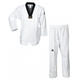 Presentamos el uniforme de taekwondo más ligero del mundo, especialmente diseñado para las competiciones. Fabricado con un tejido ultraligero 100% poliéster, que absorbe y seca el sudor más rápidamente para mantenerte fresco y seco mediante la tecnología ClimaCool de Adidas. Homologado por World Taekwondo (WT). Tenga en cuenta que el uniforme de competición del luchador viene liso (sin rayas) y sin bolsillos para cumplir con las normas de la WT y para mejorar la acción de pateo. También tenga en cuenta que el logotipo de la WTF ha cambiado por el nuevo logotipo de la WT, siguiendo las regulaciones del World Taekwondo (antes conocido como World Taekwondo Federation).
