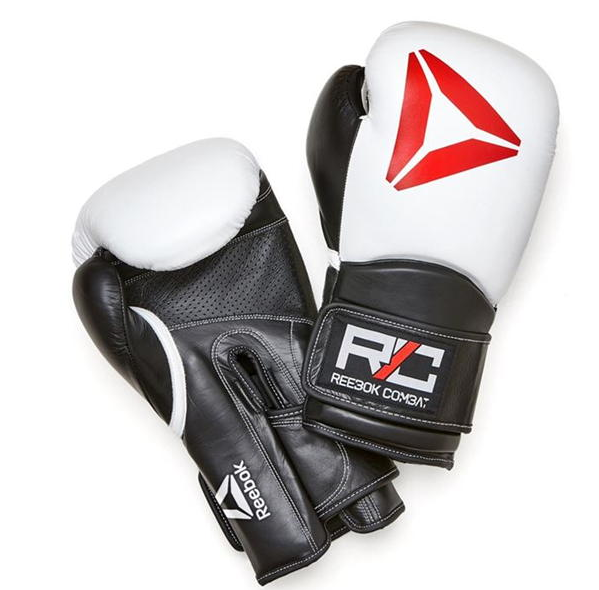 Con la marca Reebok prominente en blanco y negro, los guantes están disponibles en 10 oz, 14 oz y 16 oz.