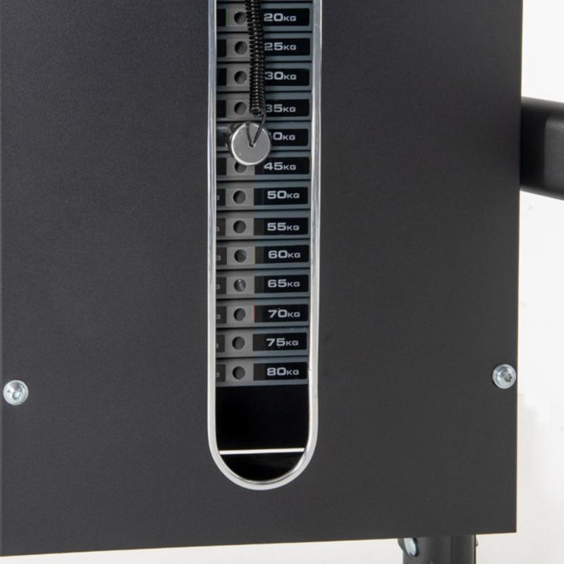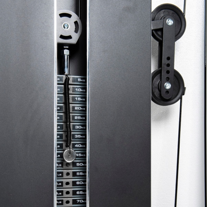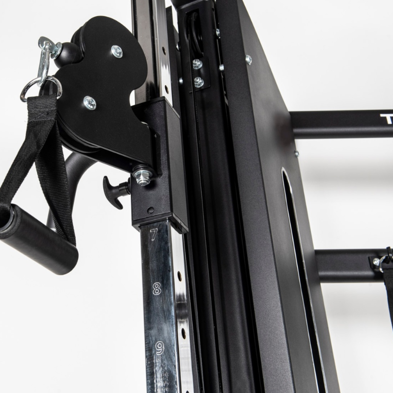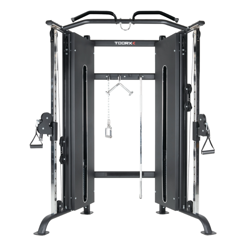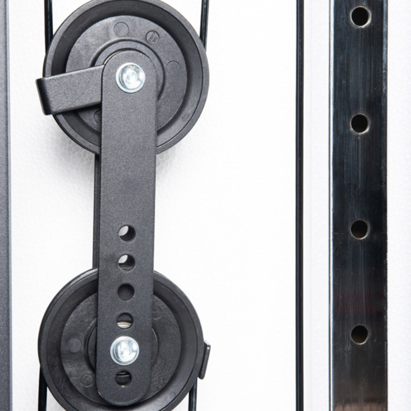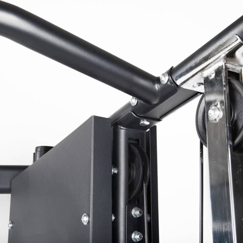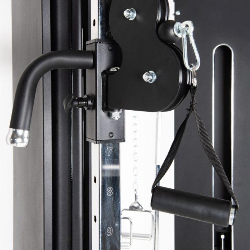 Incluye la barra dorsal, manijas de polea, barra de tríceps, barra de press de tríceps y cuerda de tríceps.