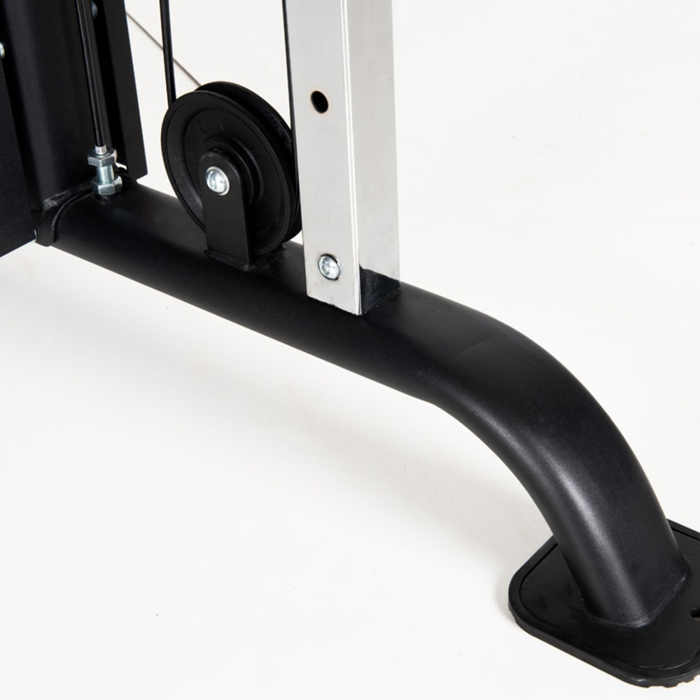 Cruce de cable de doble polea Sistema de poleas con rodamientos de bolas de alto rendimiento. Sistema de cables: cables tejidos de acero con recubrimiento de poliuretano. Resistencia a la rotura 2000 Kg.