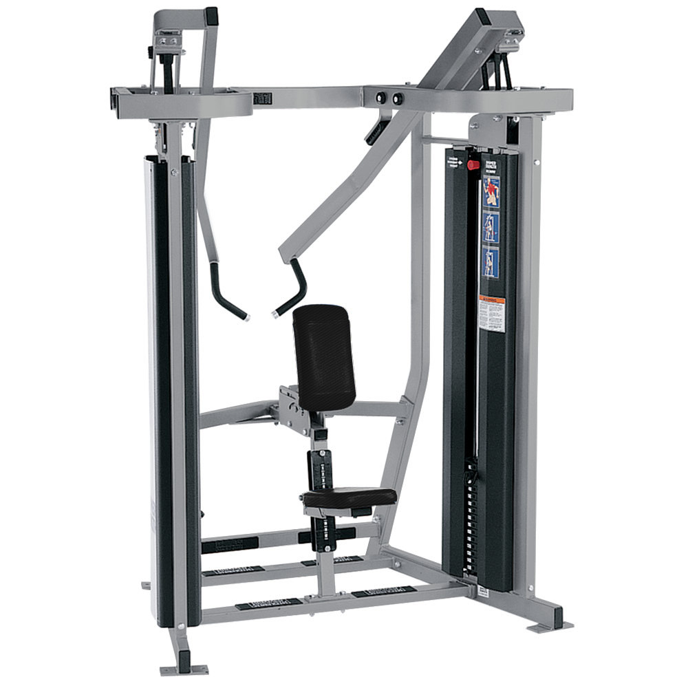 La máquina Iso-Lateral Row MTS incorpora columnas de pesas que permiten realizar movimientos independientes divergentes y convergentes. El agarre con la palma hacia arriba y el pivote sobre la cabeza ofrecen un arco de movimiento natural y la muñeca conserva su posición neutra. Además, la regulación del asiento ofrece estabilidad adicional.