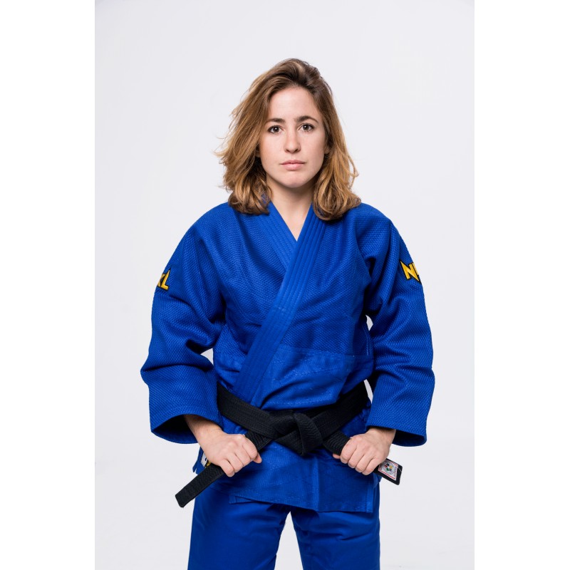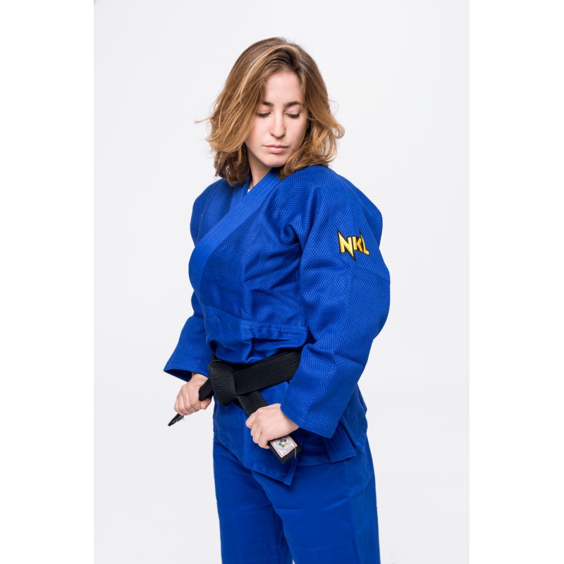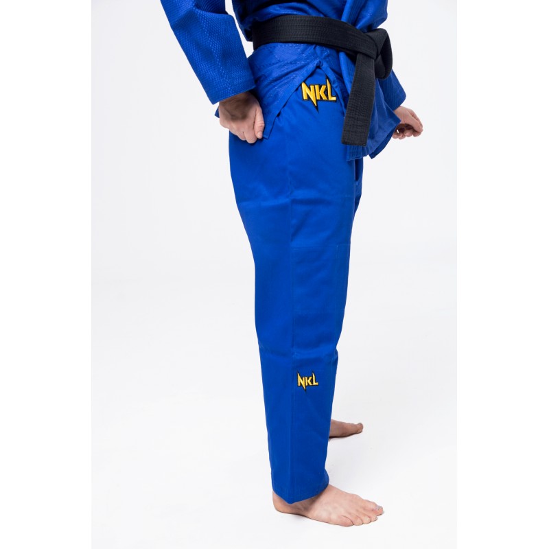 Judogi Azul de competición fabricado por la marca NKL, con un gramaje de 650 gr.  Medidas y características oficiales IJF, pero NO está homologado.