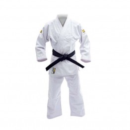 Judogi ideal tanto para iniciación como para entrenamientos avanzados, de color blanco incorporando el logo NKL bordado en color dorado tanto en la chaqueta como en el pantalón.