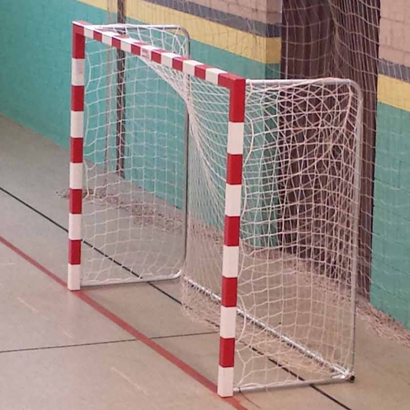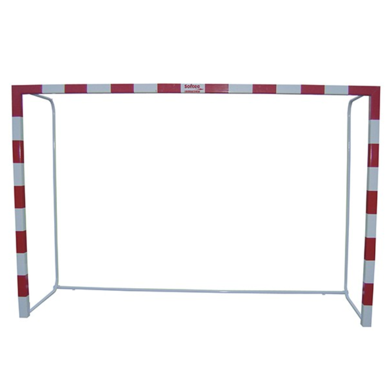 Todas las porterías TRASLADABLES SOFTEE EQUIPAMENT de futbol sala/balonmano incluyen, marco de postes y larguero en aluminio, acero o madera dependiendo que portería, bases en acero, piezas de unión metálicas (en caso de ser porterías de aluminio se añaden escuadras interiores de unión poste/larguero) ganchos de poliamida para sujetar la red a la parte trasera del marco y a la base y por último también incluye los arquillos metálicos traseros por donde desciende la red.