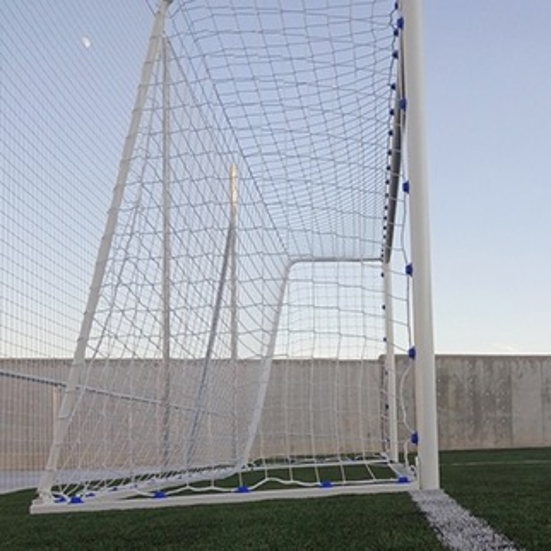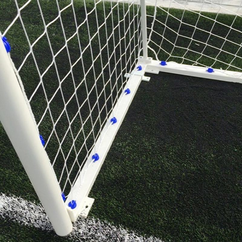 Todas las porterías trasladables SOFTEE EQUIPAMENT metálicas incluyen, marco de 80 mm y bases en acero de sección 80×40 mm, ganchos de poliamida para sujetar la red a la parte trasera del marco y a la base, arquillos metálicos traseros por donde desciende la red y por último también incluye cada portería 4 pletinas con agujeros de 1,5 mm por si tiene necesidad u ocasión de anclarlas al suelo.