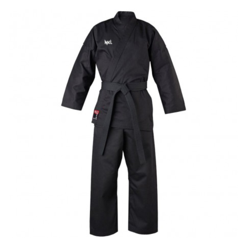 Karate-gi, es el nombre que recibe la ropa típica para la práctica del karate, el “traje”. Este, fabricado por la marca NKL en color negro es ideal para iniciarse en esta disciplina y a su vez resistente para su uso diario, muy cómodo y ligero (8oz) . Los pantalones disponen de cintura elástica y cordón para una mayor sujeción.