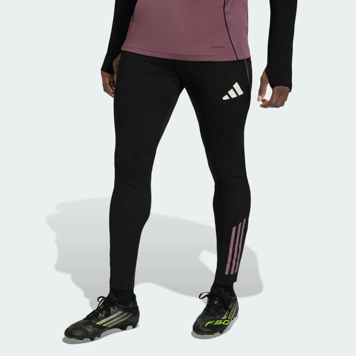 Lleva tu pasión por el Real Madrid al campo de entrenamiento. Parte del uniforme adidas que usan los jugadores antes de los partidos de liga, estos pantalones de fútbol ajustados y elásticos están diseñados para soportar cada pase y disparo sin restringir tus movimientos. AEROREADY ayuda a controlar la humedad, mientras que el escudo del equipo termosellado brilla con orgullo.