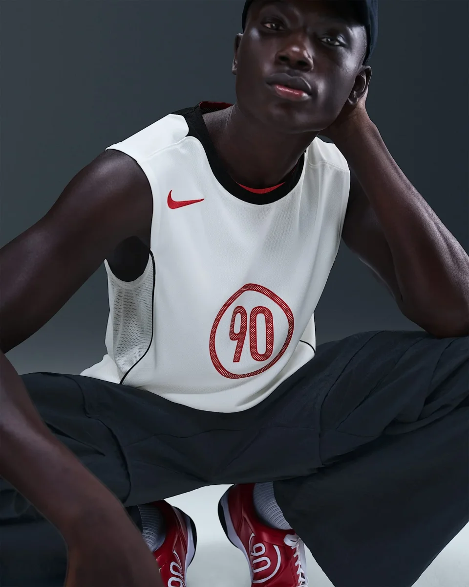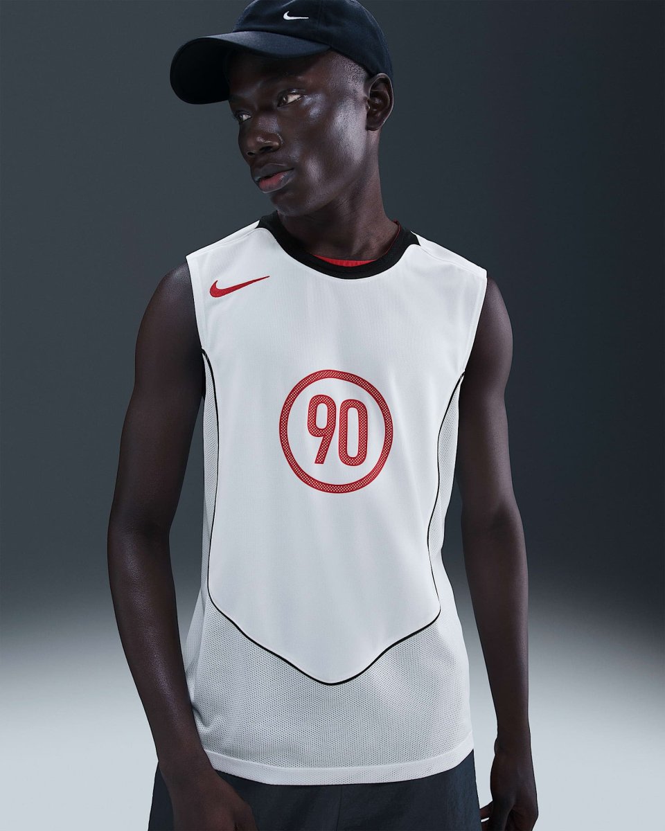 Esta polera sin mangas Total 90 canaliza la energía y el estilo de principios de los años 2000 y evoca uno de los jerseys más icónicos de la época. Los paneles curveados de malla absorbente de sudor y ribetes crean un look listo para el partido en las gradas y en las calles.