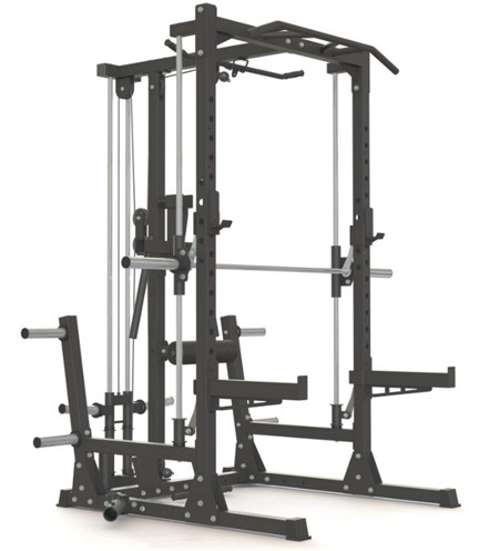 El rack de sentadillas de Kronos cuenta con un diseño elegante y estético. Es una jaula multifuncional, perfecta para cualquier entrenamiento con peso libre en barra, ya que es regulable en altura al poder mover sus soportes, lo que permite realizar diferentes tipos de ejercicios. También ofrece la posibilidad de realizar ejercicios con polea alta y baja. Está diseñada específicamente para brindar apoyo y seguridad al usuario en ejercicios como las sentadillas o el press militar para hombros con barra, combinando su versatilidad con los ejercicios en polea. Dispone de una barra guiada (smith machine). Es un soporte imprescindible para entrenamientos de Crosstraining y Powerlifting, y también es perfecto para salas de musculación. Además, cuenta con 1 barra de dominadas multiagarre, clavijas superiores e inferiores para bandas de resistencia, soportes J para sentadilla, soporte de seguridad para sentadilla, agarre de polea alta y recto y landmine.