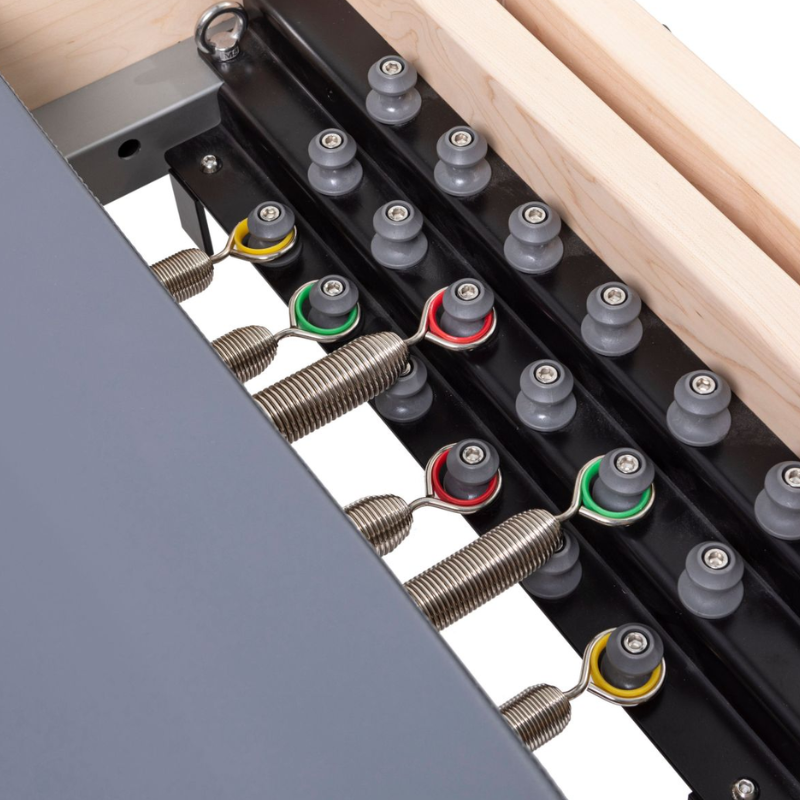 El Master Instructor incluye una tabla de salto extraíble y una correa de anclaje de pies. Esto es ideal para entrenamientos variados. Está disponible en varios colores, como negro y gris, así como en otros colores bajo demanda. Si buscas un reformer que combine calidad y adaptabilidad, el Master Instructor es tu mejor opción para alcanzar tus objetivos de fitness.
