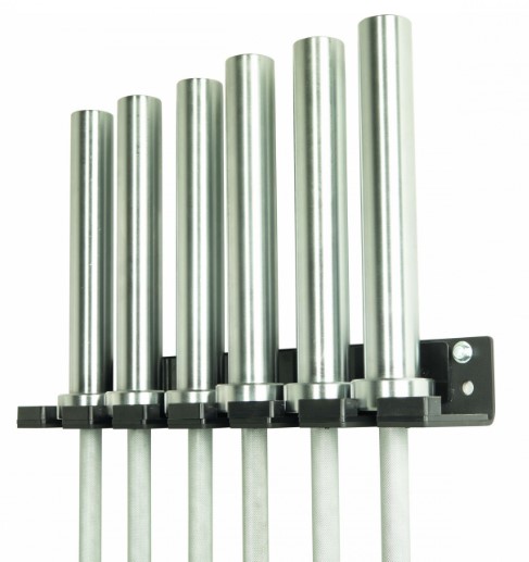 - Almacena hasta 6 barras olímpicas o estándar.