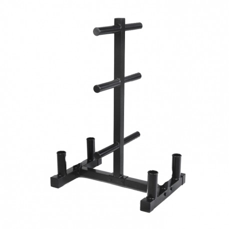 Soporte vertical para discos y barras olímpicas.