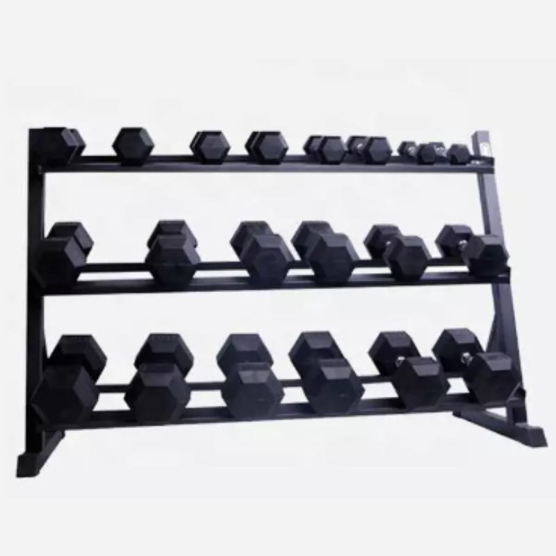 Consigue un espacio de entrenamiento bien organizado, permitiendo a los usuarios un acceso fácil y eficiente para seleccionar y reemplazar sus mancuernas hexagonales durante el entrenamiento de fuerza y las rutinas de ejercicio.