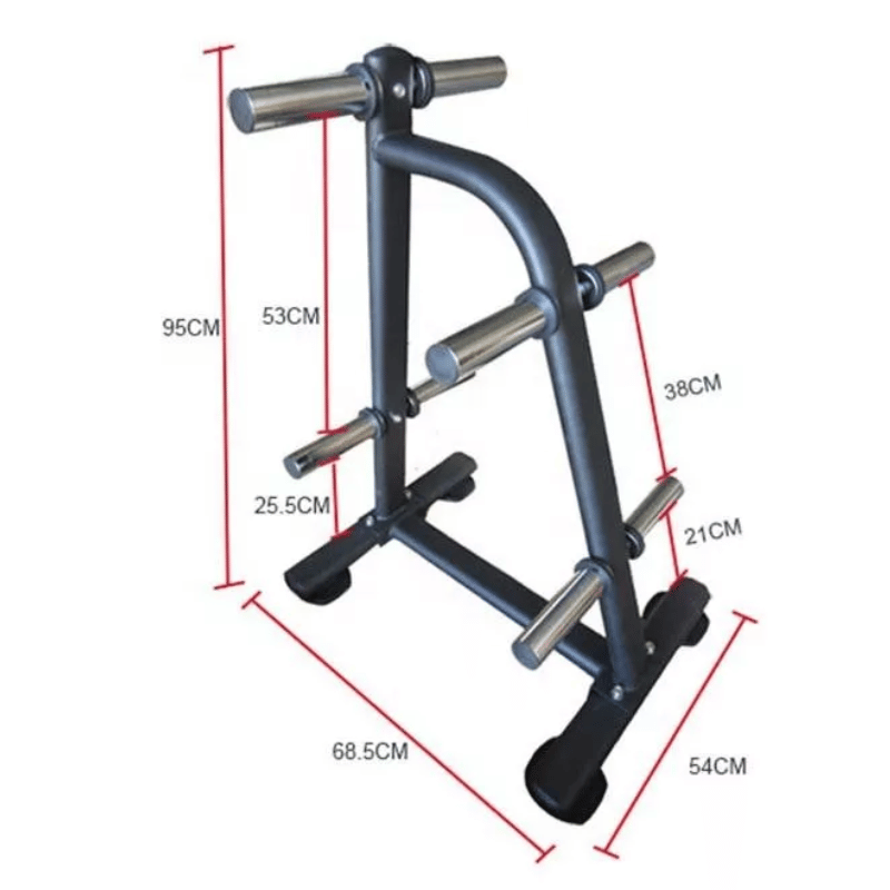 Soporte para discos olímpicos de 50mm. Fabricado con tubos curvados reforzados, este soporte está diseñado para soportar cargas pesadas y proporcionar una buena estabilidad.